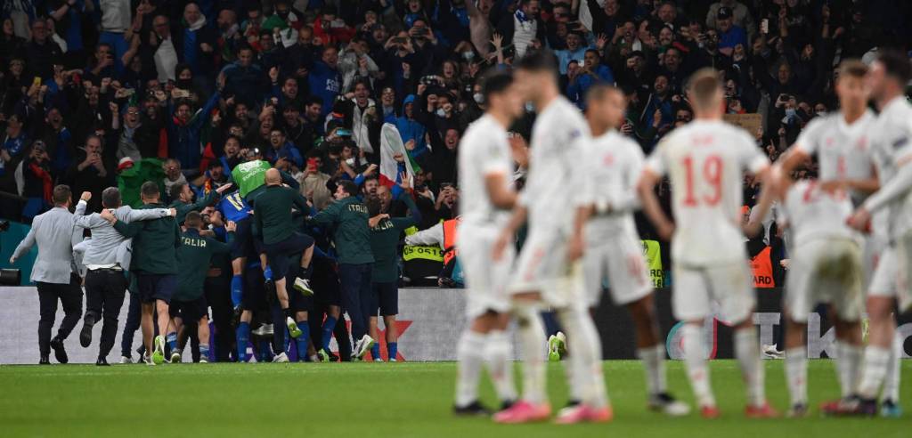 Ya en el torneo, empezamos muy lento en la fase de grupos, con posesiones laboriosas que dolían a la vista, contra equipos que estaban más cómodos quedándose atrás esperando a nuestro error, que nosotros con la bola. Pero una vez salimos de esa fase y avanzamos a las eliminatorias, fuimos mejorando, sin perder el estilo de juego, y calibrando la defensa, dado que arriba no había demasiados resultados hiciéramos lo que hiciéramos. Y nos abrimos un hueco entre los favoritos, es más, nos enfrentamos contra los claros favoritos, Italia, con un juego inaudito en ese país, ofensivamente muy potentes, con una confianza que a muchos equipos les faltaba, y completamente destrozando defensas. Y continuamos con nuestra racha y nuestro juego, dominando a los Azurri con la bola, no dejándoles atacar, tuvimos una ocasión que Morata falló (después de llevar un torneo de altibajos), y después de va y vienes durante el partido, conseguimos marcar un gol, gracias al mismo que falló el anterior, Álvaro Morata, (confirmando los altibajos) y parecía que nos encaminábamos hacia la final, pero los italianos eran incansables en la presión, y esta persistencia culminó en Federico Chiesa arrancándonos un gol con un tiro de precisión clínica. Después de una prorroga en donde ningún equipo tenía energía ni ganas para atacar, llegamos a penaltis, y confiamos en Unai, que después de su error garrafal en la fase de grupos, se había reconvertido en un héroe, salvándonos de varias tandas seguidas, íbamos empatados cuando Unai le paró su penalti a Jorginho, uno de los mejores tiradores del mundo y el mejor para Italia, y le tocaba al hombre del momento, Morata, y, una vez más, falló, esta vez si que nos enterró bajo tierra, y perdimos contra los eventualmente ganadores del torneo.