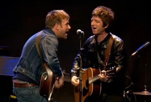 Siendo ambos grupos de la misma edad, emergiendo en un ámbito nuevo con mucho éxito, al principio se llevaban bien, pero todo se torció cuando una entrevista de 1994 con Damon y Noel en San Francisco terminó con insultos, habiendo empezado con halagos. En enero de 1995, ambos grupos recibieron premios en los BRAT Awards. En una sesión de fotos conjuntas, Noel le metió el dedo de su premio a Damon en la nariz, después de que Graham Coxon le diera un beso en la mejilla a su hermano Liam y este se negará a hacerse una foto. Esto empezó una pelea algo más personal entre Liam y Graham. Llegaron a pelearse, ambos borrachos, en un pub de Camden, The Good Mixer.