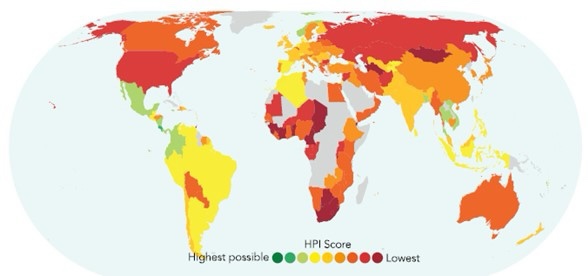 El Índice del Planeta Feliz o el Happy Planet Index (HPI) es un índice de desarrollo que abarca tres métricas: el bienestar de un país, su esperanza de vida y su impacto ambiental, es decir, la huella ecológica de sus ciudadanos. Pretende medir el progreso con un mayor énfasis en las consecuencias ambientales y la calidad de vida generada por las políticas de cada país. Por tanto, tiene en cuenta potenciales problemas ambientales futuros, y es aplicable en países no occidentales que valoran la protección de su medioambiente más que su solamente su desarrollo económico. El país con mayor ranking del HPI es Costa Rica, lo cual indica que su gobierno está muy comprometido con la protección ambiental. No obstante, el HPI no es una métrica completa y perfecta, simplemente actúa como una brújula que apunta hacia una nueva percepción del progreso de la economía, y tiene varias desventajas. Una de ellas es la subjetividad de los datos del índice, tales como el bienestar, que es difícil de cuantificar. Además, falla para medir bien la calidad de vida actual de sus ciudadanos al valorar tanto la sostenibilidad en el largo. Aun así, la conclusión clave de este índice es que todavía podemos tener buenas vidas, solo tenemos que crearlas de manera más “eficiente”