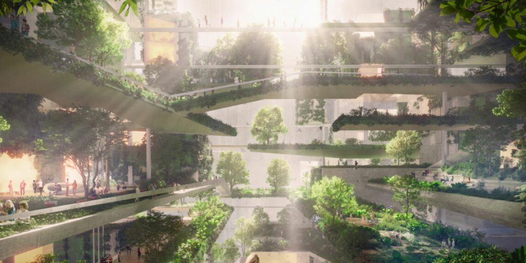 Pues bien, esta ciudad cuenta con una capacidad de hasta 9 millones y medio de personas que serán abastecidas únicamente con energías renovables. Para continuar con el plan eco-friendly, no existirán coches ni calles, puesto que los habitantes contarán con todos los servicios básicos y necesarios a tan solo 5 minutos a pie desde cada casa. En cualquier caso, tendrán a su disposición un medio de transporte en caso de querer desplazarase: un tren de alta velocidad que unirá ambos extremos de la línea en tan solo 20 minutos.