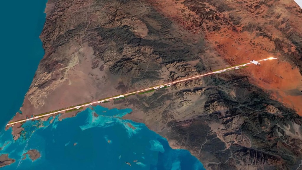 El ambicioso proyecto del príncipe de Arabia Saudí, Mohamed Bin Salman: una ciudad lineal que recorre 170 km de desierto, siendo esta la distancia entre Amsterdam y Bruselas, con apenas 200 m de ancho y 500m de altura.