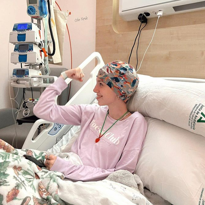 Elena Huelva desde su cama del hospital en agosto de 2022. [Fuente: @elenahuelva02 en Instagram]