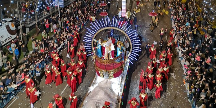 Durante las tres horas que duró la famosa cabalgata, los pajes de los Reyes tiraban caramelos de todo tipo, desde bombones de chocolate, hasta caramelos duros sin gluten, donde los niños con escaleras y paraguas, recogían la mayoría.