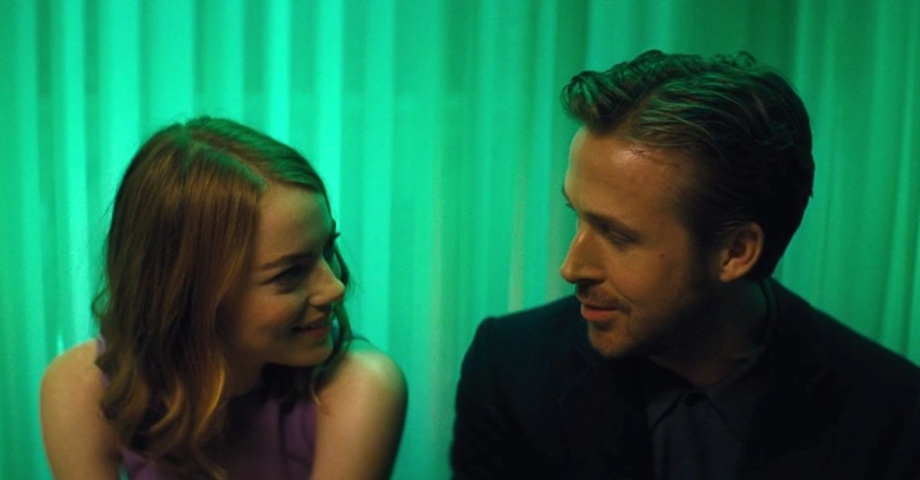Verde: El color verde es el principal representante de la vida. Generalmente al ver este color pensamos en la naturaleza, pero en el cine también se utiliza para otros aspectos. En esta escena de Joker el color que más ocupa es el verde ya que es en este momento cuando “nace” el Joker. En esta otra escena de La La Land lo que nace es la relación de Mia y Sebastian, que tras estar un tiempo separados esa relación vuelve a la vida.