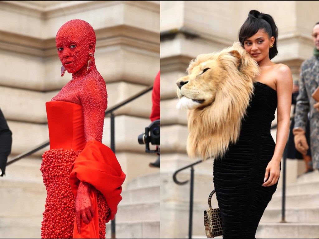 Muchas fueron las celebridades que acudieron a este espectáculo pero las que llegaron con los trajes más emblemáticos fueron sin lugar a duda: Kylie Jenner con un vestido negro que llevaba pegada una enorme cabeza de león, y Doja Cat que fue con un pasamontañas bordado con cristales rojos a juego con el vestido.